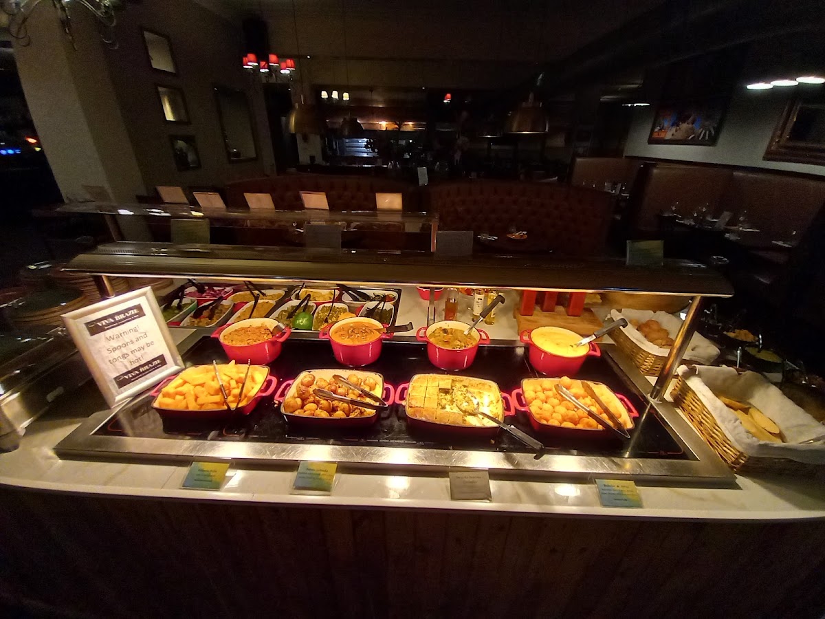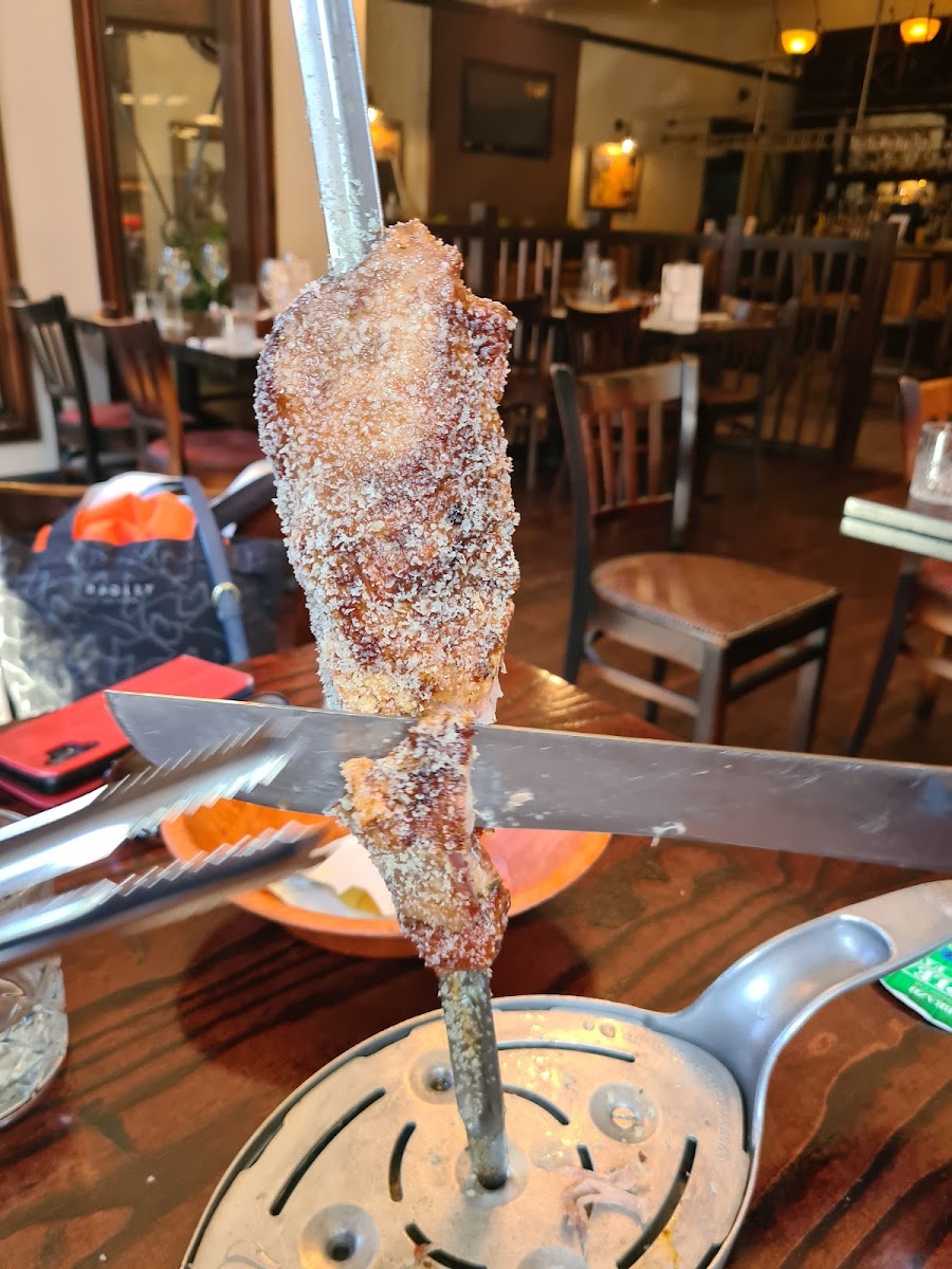 “An oldie but a goodie! Visited on a Sunday afternoon, it was fairly quiet. The buffet was filled with really tasty side dishes from risotto to mashed potatoes to cured meats. It's easy to fill up on that and end up missing out on all the meats! You have a red and green card on your table to show when you want more meat or when you want to stop. They bring round different meats on large skewers. Plenty of it. This time we had a lot of the same meat, rump steak. Would have been nice to try more variety. However, they brought round garlic bread and cinnamon pineapple! Delicious. The servers were all friendly and polite. Special mention to Thomaz, he was really knowledgeable about the food and how they cook it etc. He was also training another member of staff at the time. Couldn't have been more helpful! They offer vegetarian and vegan options. If you want to ask for your meats well-done they will happily oblige! Absolutely loved it. Will definitely be back!”