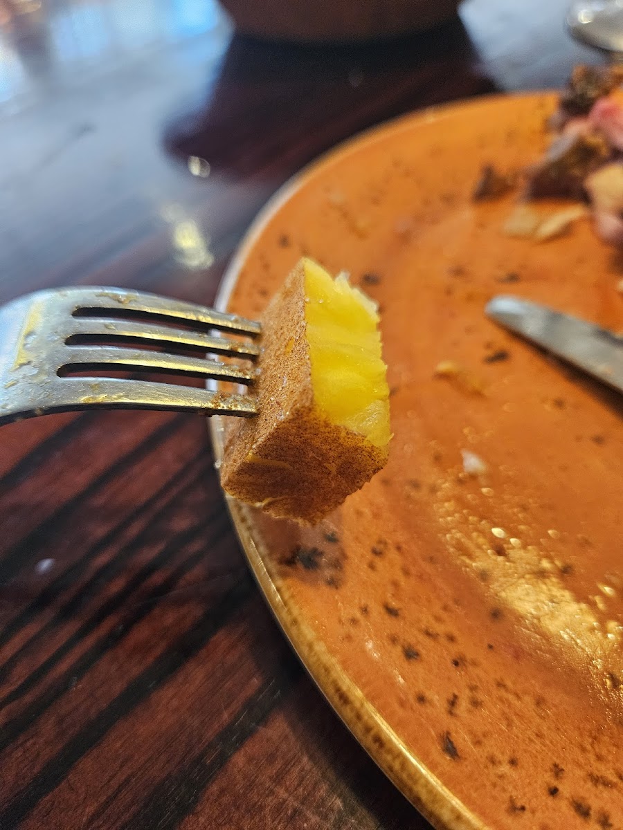 “Absolutely stunning service and food. I ordered the halloumi steak and it was mouthwatering, perfectly crispy on the outside, and juicy and soft on the inside. When it came to the table it smelled absolutely wonderful, served on a bed of thinly sliced baby potatoes which were godly! My family thought all of the meat was very flavourful and perfectly cooked. They absolutely loved the lamb (which they don't usually anywhere else) and said they hadn't had anything that tasted as good in a while and they go out for food quite often. The servers also came round with grilled cinnamon pineapple, and garlic bread. Which was suitable for me as I'm vegetarian and can I stress how good it was!! absolutely delicious. Left everyone at the table asking for some pineapple again. The service was so lovely, they were extremely patient with us as we weren't sure how everything worked at first and explained everything until we were confident. It was also very fast and we were not left waiting at all. Special thanks to Vini, who was soo sweet and helpful. This is the most delicious and well cooked food we have had in a while. Unique service and money well spent. Despite being pricey it was definitely worth it for a treat. Thank you so much :) will definitely return.”